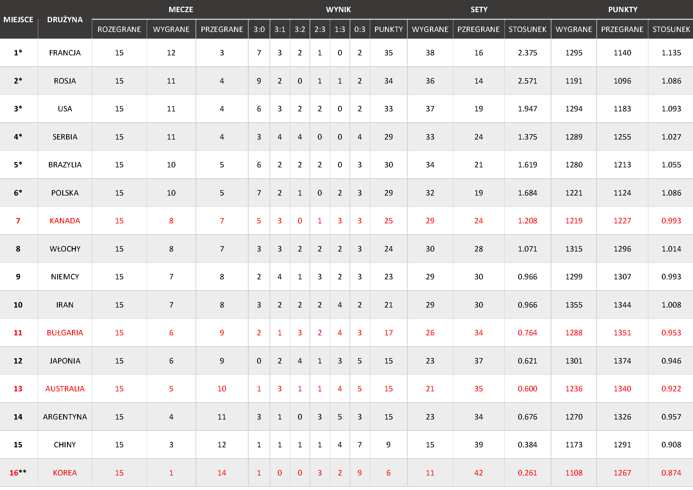 20:45 Serbia – Brazylia