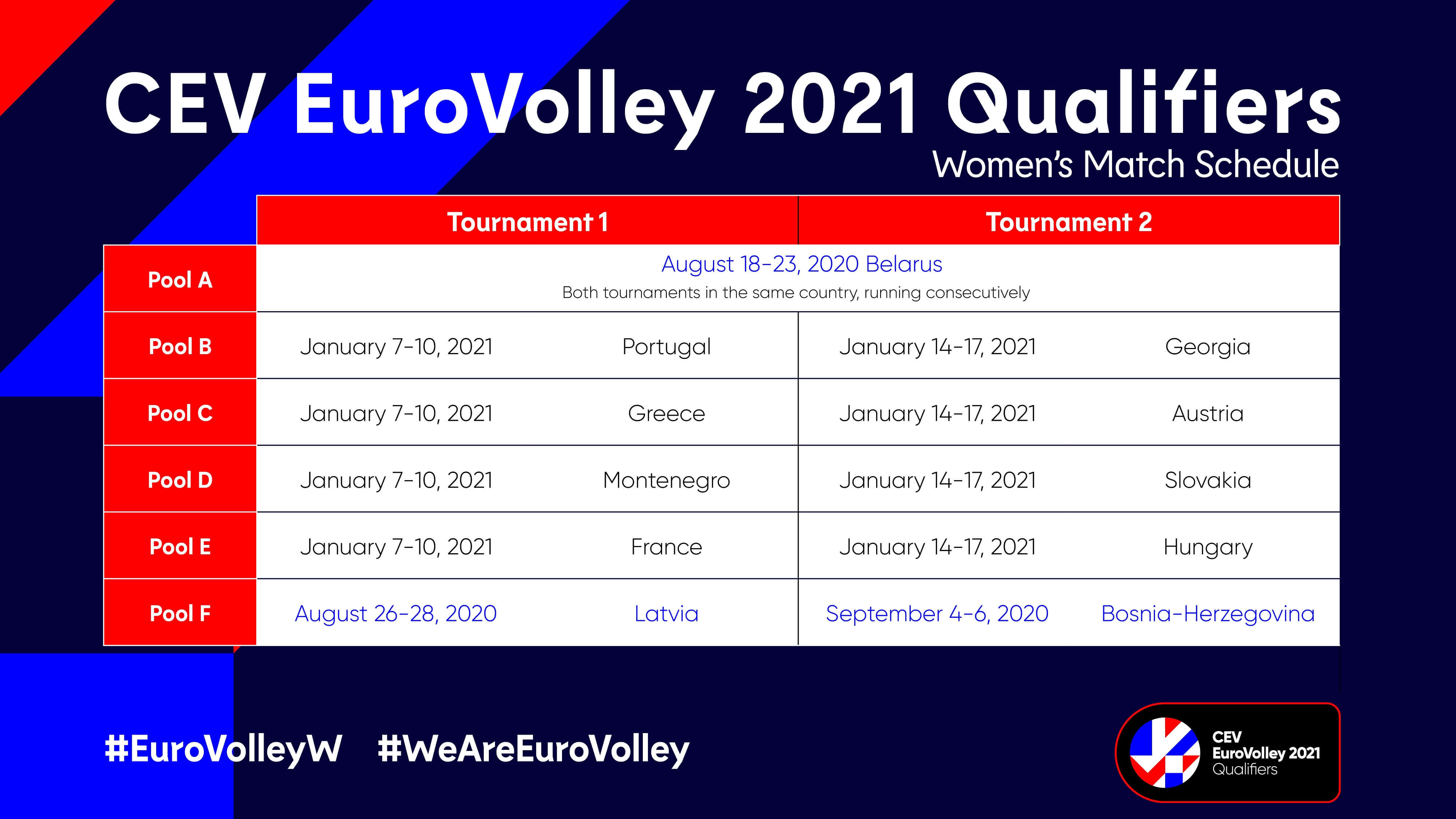 Wstępny program kwalifikacji kobiet EuroVolley 2021 wygląda obecnie tak: