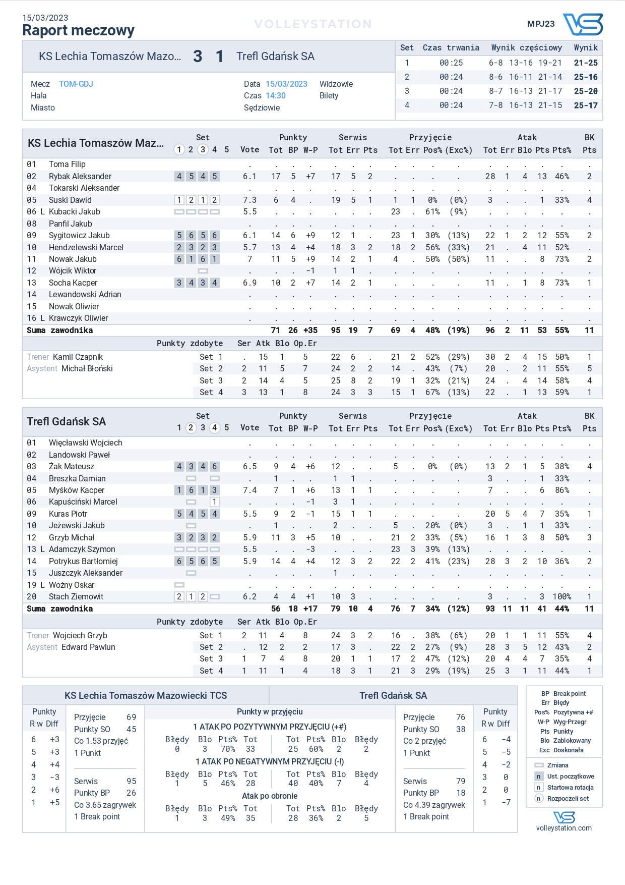 KS Lechia Tomaszów Mazowiecki – Trefl Gdańsk 3:1 (21:25, 25:16, 25:20, 25:17)