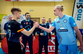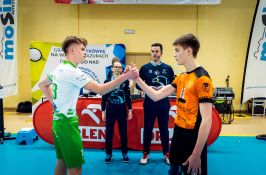 Na otwarcie zmagań grupy B spotkały się Hemarpol Norwid Częstochowa i UMKS MOS Wola Warszawa. To starcie było jednak pokazem siły warszawian, którzy zdeklasowali rywali. Pierwszą partię częstochowianie zaczęli dobrze, a ogromna motywacja z jaką przystąpili do meczu pozwalała im na prowadzenie wyrównanej gry. Niestety jednak z akcji na akcję animusz malał, a warszawianie pokazywali na co tak naprawdę ich stać. Dość dodać, że ten rocznik MOSu to mistrzowie Polski w kategorii młodzików z 2021 roku. „Doświadczenie” i poukładanie gry było najmocniejszą stroną stołecznego klubu, który dawał przeciwnikowi solidną lekcję siatkówki. W samym tylko drugim secie różnica w skuteczności ofensywy była diametralna – 11% po stronie Norwida i 52% w ofensywie Woli. Nie do zatrzymania był też wracający po kontuzji Aleksander Nowik, który tylko raz dał się zablokować i tylko raz popełnił błąd. Atakujący z Warszawy zakończył mecz z 22 punktami na koncie i niemal 70-procentową skutecznością w ofensywie. Za swój występ odebrał nagrodę MVP.