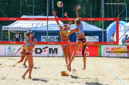 W półfinałach na zwycięskie dwójki czekały już pary, które sobotę zamknęły trzema zwycięstwami. Ieva Vasiliauskaitė i Erika Kliokmanaite zmierzyły się z Katarzyną Kociołek i Martą Łodej. To było kolejne starcie zapewniające najwyższy poziom gry, zakończone kolejnym tie-breakiem. Mimo że reprezentantki Polski bardzo walczyły, górą okazały się solidniejsze w ataku przeciwniczki. Do finału awansowała dwójka reprezentacji Polski Jagoda Gruszczyńska i Aleksandra Wachowicz, która po ciężkim i długim spotkaniu pokonała parę z Argentyny.