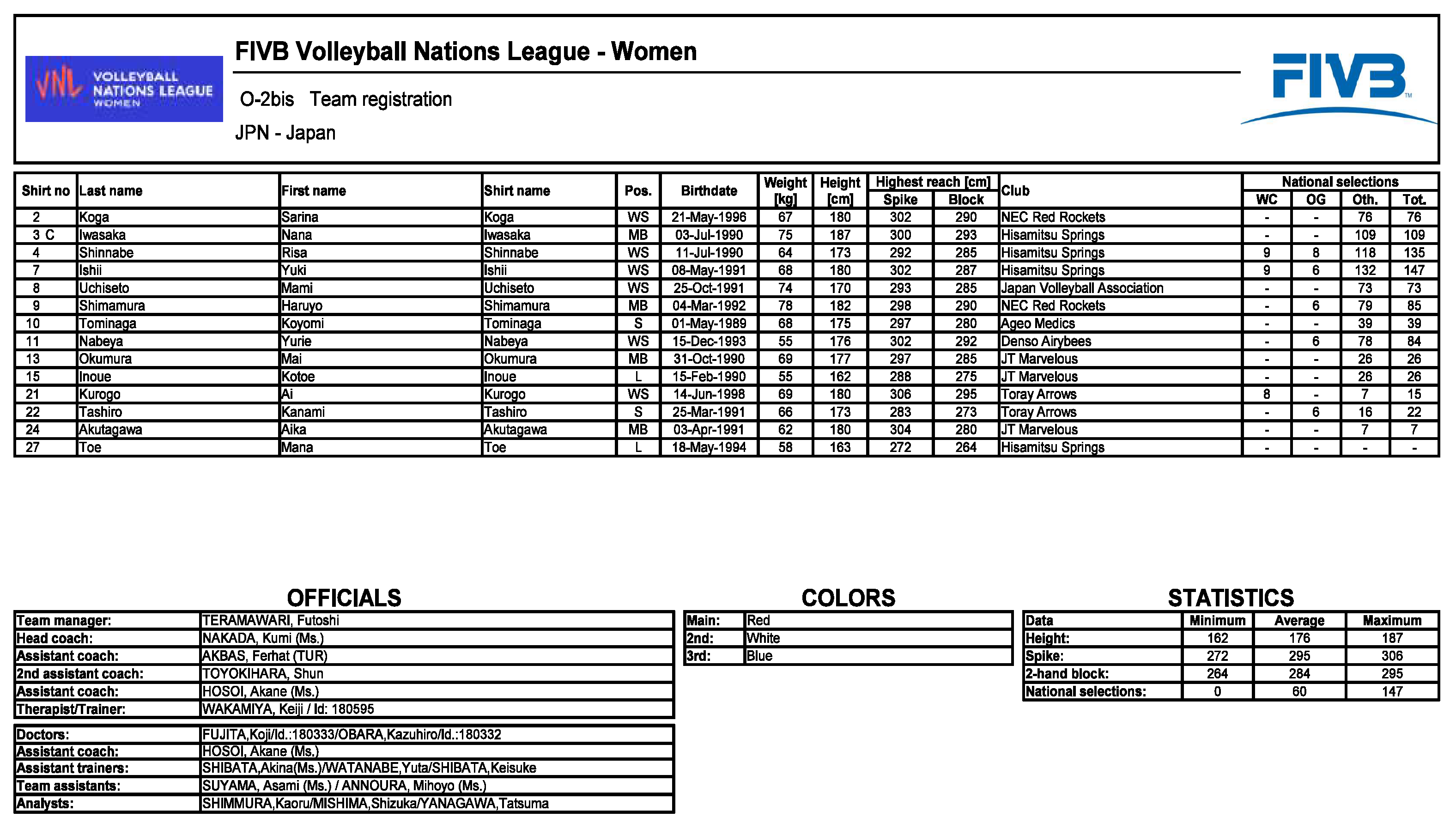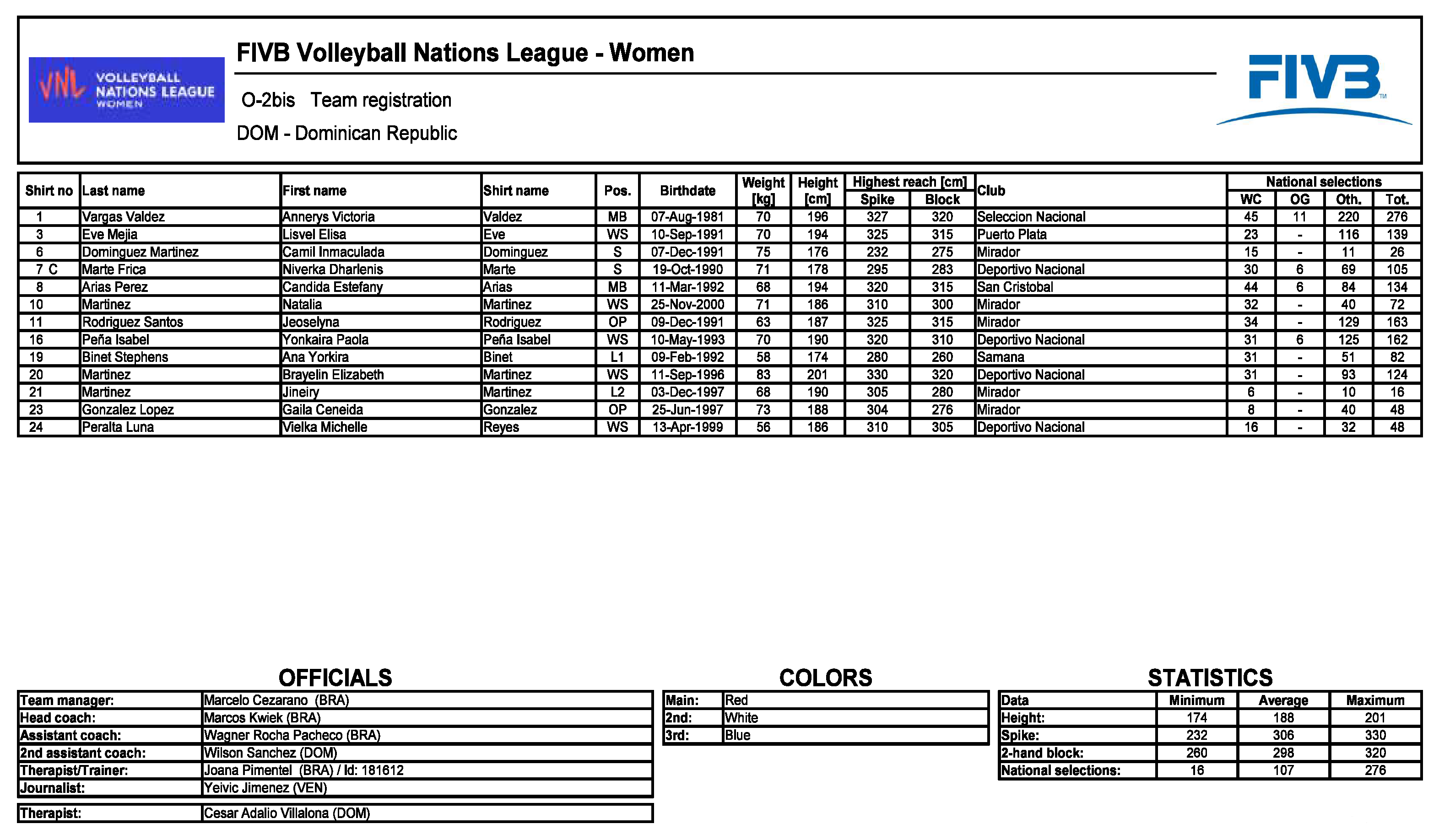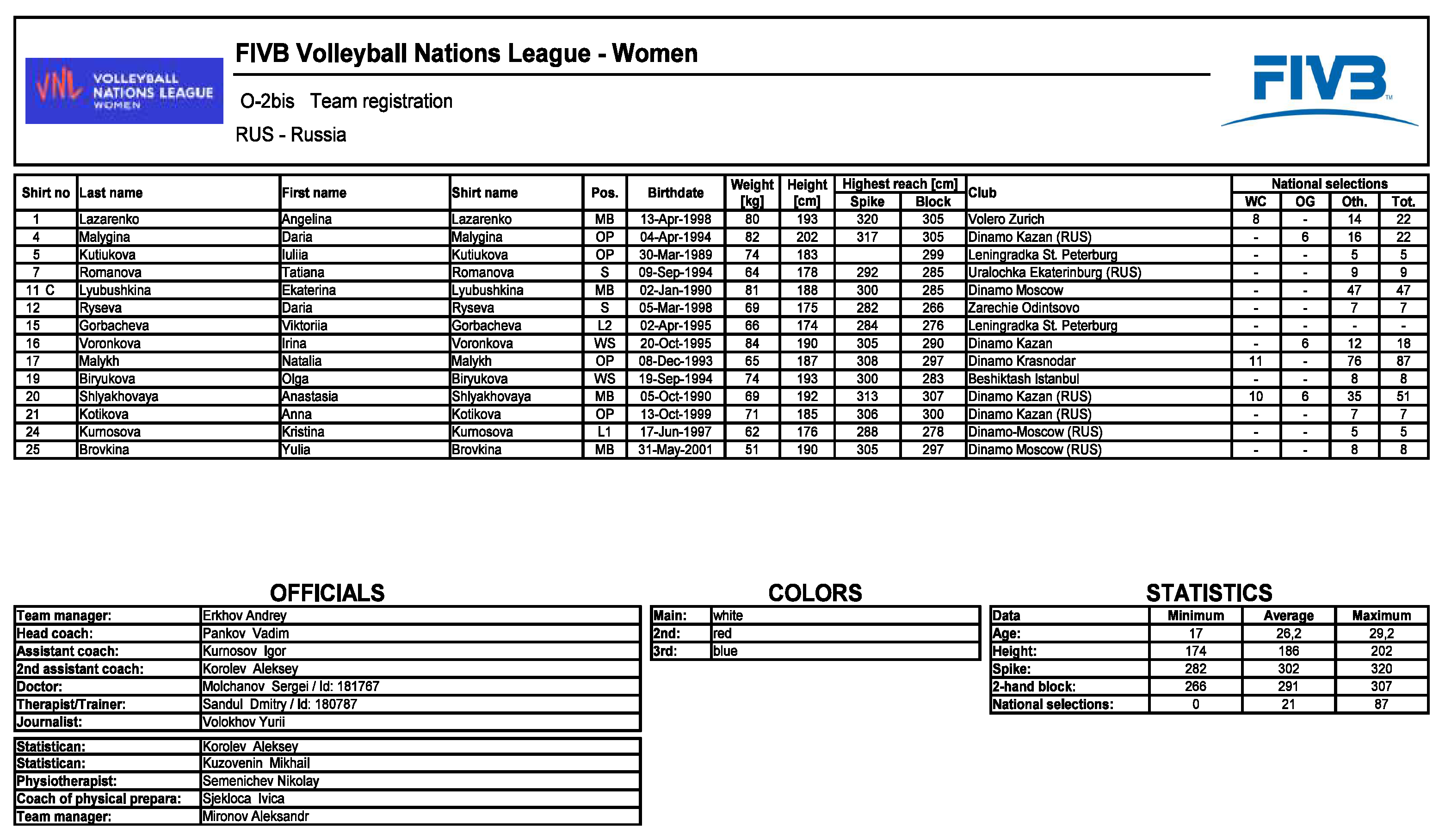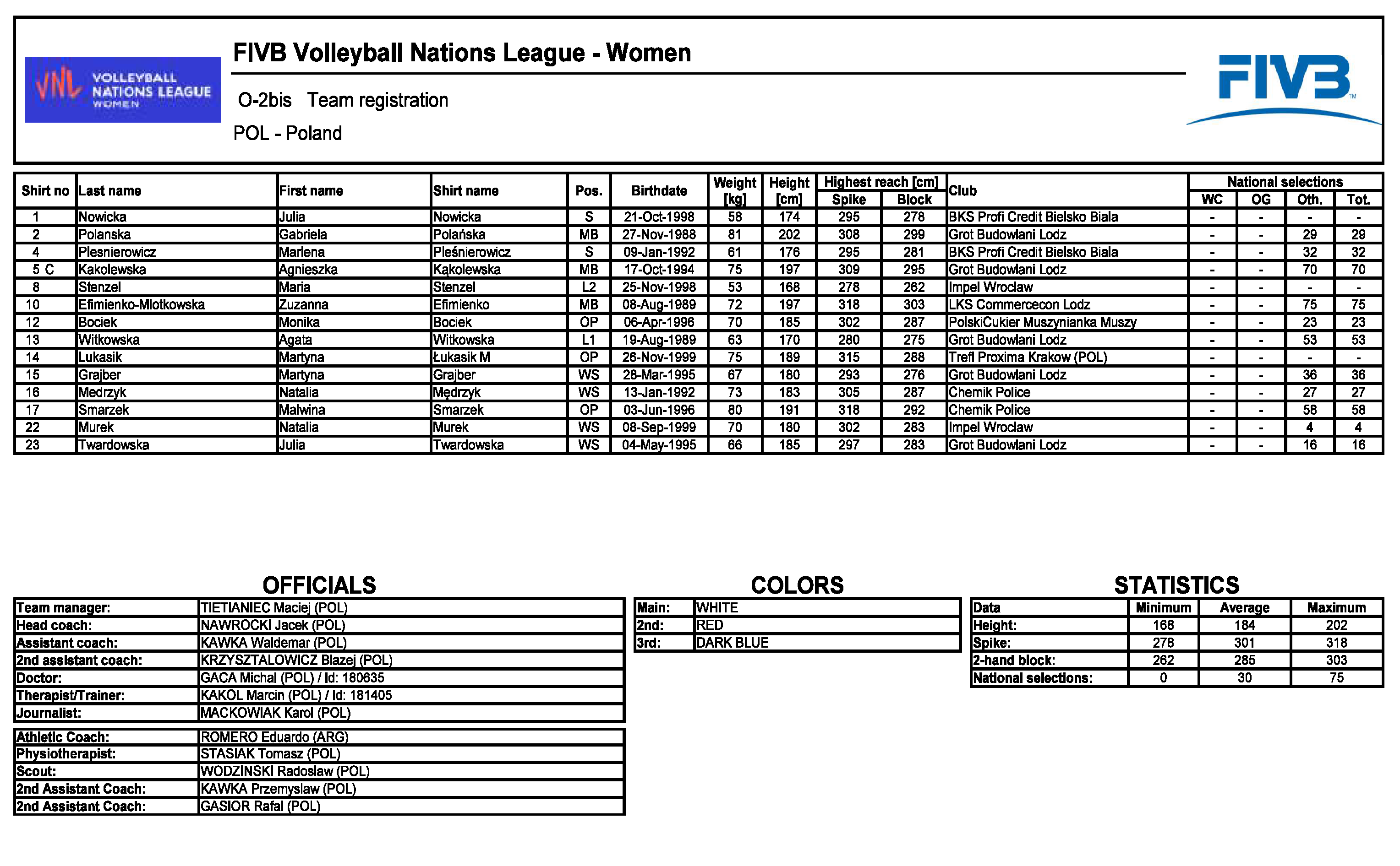 Składy drużyn na turniej VNL w Wałbrzychu (kliknij by powiększyć):